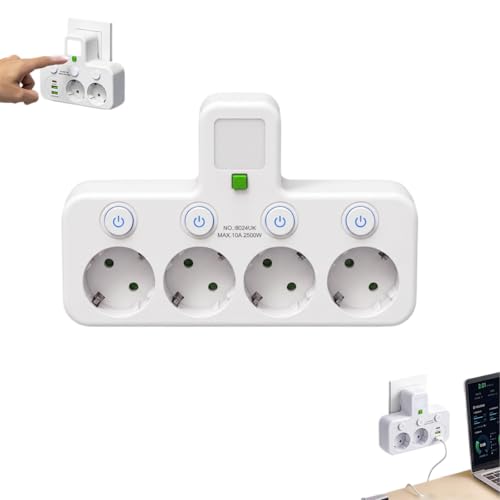2026 Multiprise Intelligente avec Ports USB, sans Fil, 3/4/5 Prises avec Interrupteurs Individuels, Multiprise Murale Multiple, Compacte Et Sécurisée, Adaptateur De Voyage (Blanc, A2)