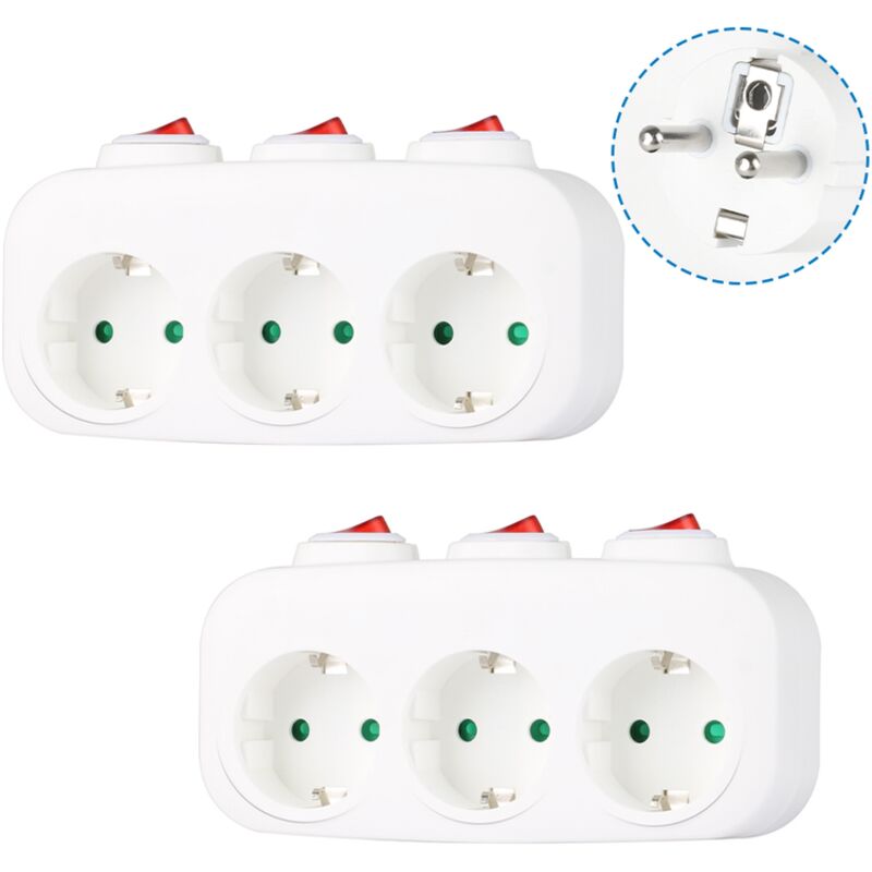 CILIA Lot de 2 Multiprise Murale avec 3 Interrupteurs Individuels Triplette Sans Fil 3 Prises Schuko Bloc Prise Multiple 16A 3680W Adaptateur