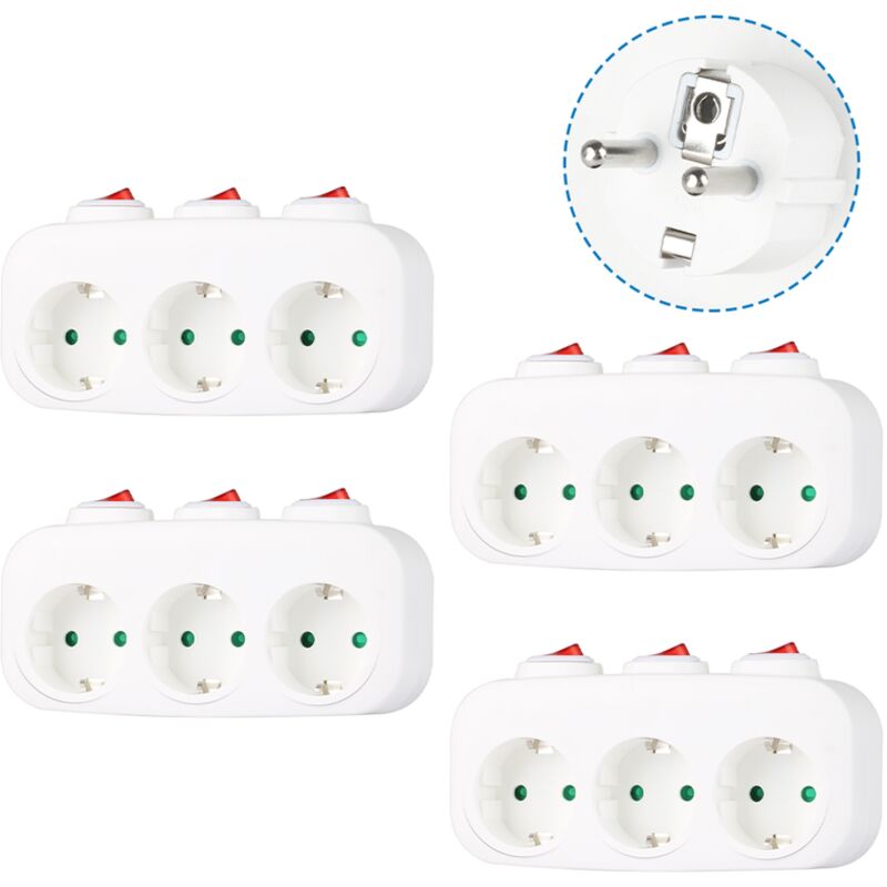 CILIA Lot de 4 Multiprise Murale avec 3 Interrupteurs Individuels Triplette Sans Fil 3 Prises Schuko Bloc Prise Multiple 16A 3680W Adaptateur