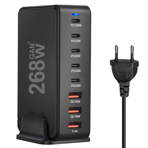 OnlyTech - Chargeur Secteur 268W Multiprise 8 Ports USB de Bureau 5 USB-C 100W & 30W et 3 USB-A 18W & 12W Technologie GAN3 Charge Rapide