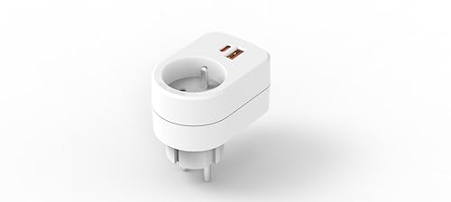 Simon - Adaptateur Combi, Adaptateur de Voyage avec Prise Française 16A et 2 Ports USB, Adaptateur Secteur Mural, Multiprise USB, Couleur Blanc