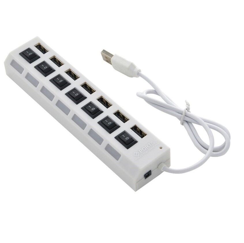 Hub multiprise USB 2.0 - 7 ports - interrupteur Switch on off - Blanc