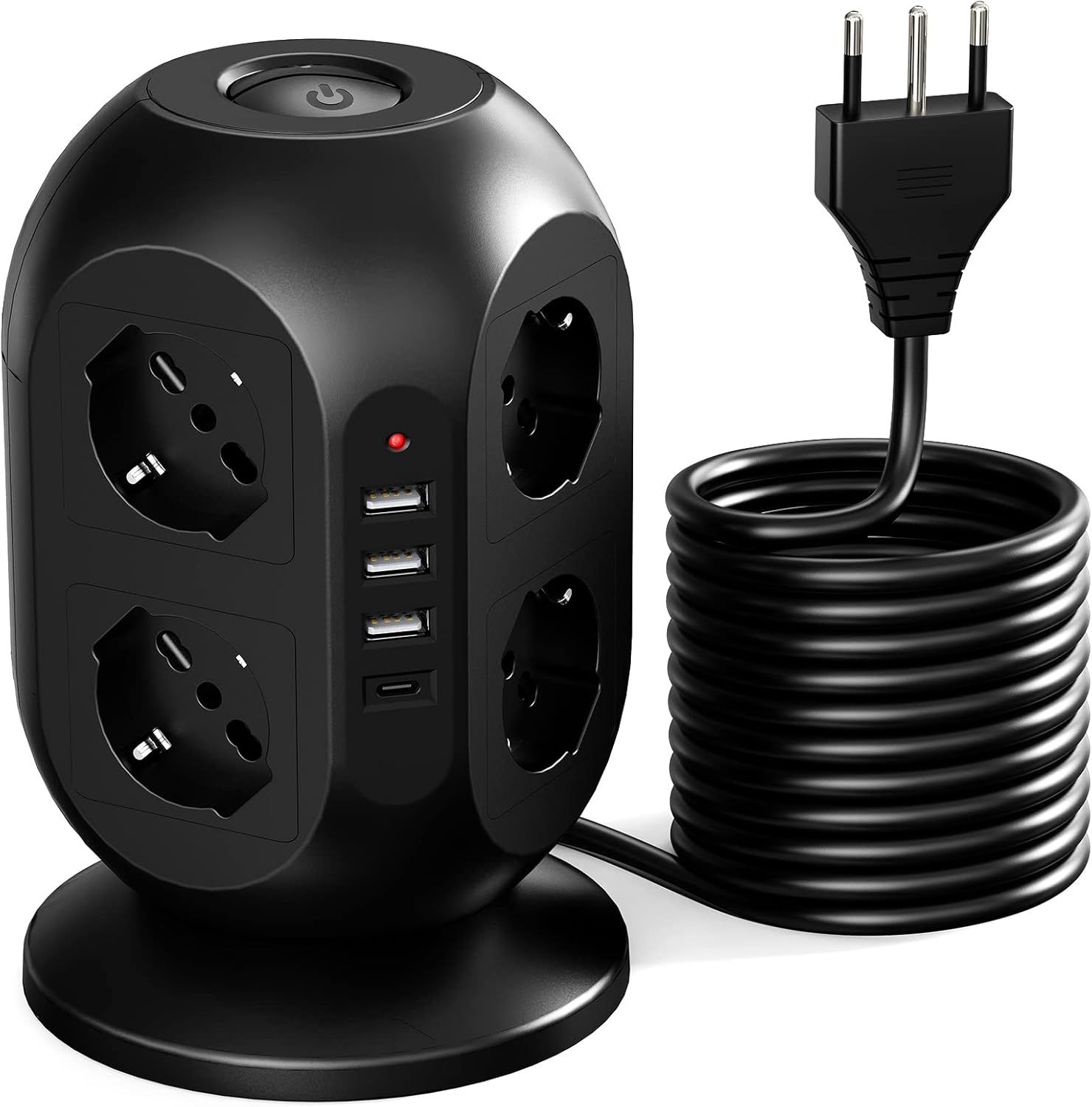 Multiprise Verticale Avec 8 Prises Et Usb C, Adaptateur Multiprise Avec Interrupteurs, Prises Plates, Protection Surtension Avec Câble De 2 M, Pour Famille, Cuisine Et Bureau, Noir[DYB981582]