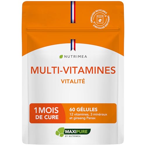 Multivitamines et Minéraux – Avec Ginseng - Vitamines A, B1, B2, B3, B5, B6, B8, B9, B12, C, D3, E, Magnésium, Sélénium et Zinc - Energie, Vitalité, Immunité - Fabrication Française - Nutrimea