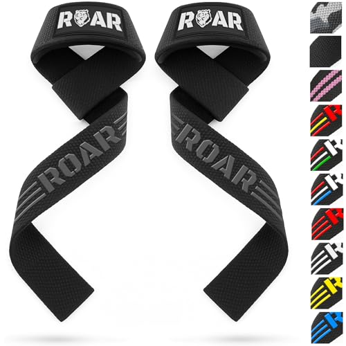 Roar® Sangles de Levage Musculation, Sangle Musculation Poignet, Lifting Straps Musculation, Sangle de Tirage Musculation, Strap Musculation, Sangle Halterophilie, Bande Poignet avec Gel (Gris)