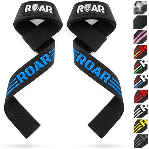Roar® Sangles de Levage Musculation, Sangle Musculation Poignet, Lifting Straps Musculation, Sangle de Tirage Musculation, Strap Musculation, Sangle Halterophilie, Bande Poignet avec Gel (Bleu)