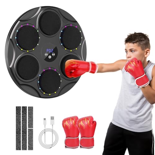 Machine de Boxe Musicale, Music Boxing Machine Enfants, Appareil de Boxe électronique Mural, Affichage LED, Mode comptage Prise en Charge Bluetooth, Musicboxing pour Entraînement à la Maison, 6 Cible