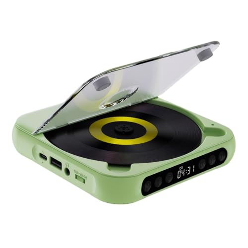Zymoplas Lecteur CD avec Connexion Bluetooth sans Fil pour écouter de la Musique à Tout Moment et n'importe où. Batterie Rechargeable intégrée de 2 000 mAh, Vert