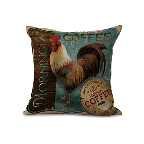 Housses de coussin 45,7 x 45,7 cm, Gris, Style café rétro avec coq à la ferme, en lin et coton pour canapé, à la maison, magasin, Bar, Club, voiture, Décor MY-A1088-01