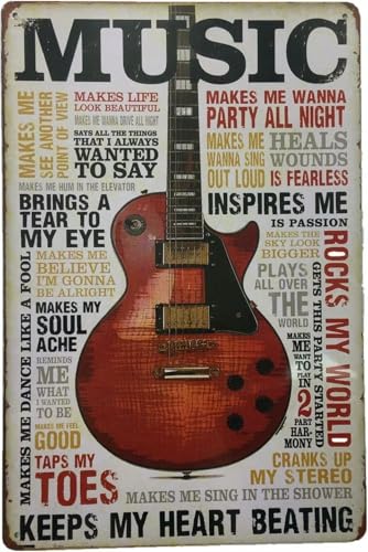 Plaque vintage en métal « Music Keeps My Heart Beating Music Inspires Me » - Décoration murale pour maison, club, cabine, garage, magasin, bar, café, ferme - 30,5 x 40,6 cm
