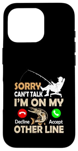 Sorry Cant Talk Im on My Other Line Moulinet de pêche Poisson Bar Coque pour iPhone 16 Pro
