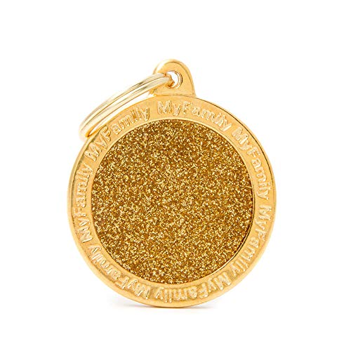 My Family mèdaille personnalisé pour chien Made in Italy, grand cercle pailleté, or, gravure gratuite Médaille pour chien, métal, collection Shine, 32x37 mm