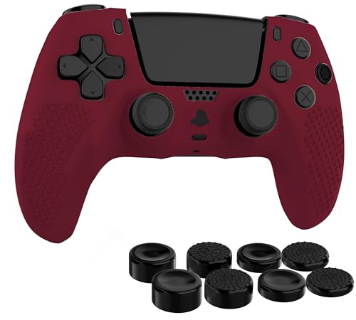 MyGadget Housse Silicone Compatible avec Manette PS5 - INCL. 8 Capuchons pour Joysticks (Petits | Grands) - Coque pour PlayStation 5 Dualsense Wireless en Bordeaux