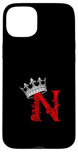 Lettre N Rouge + Couronne Graphique Rouge Coque pour iPhone 15 Plus