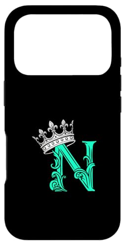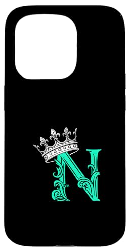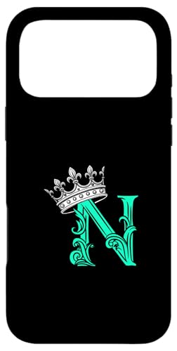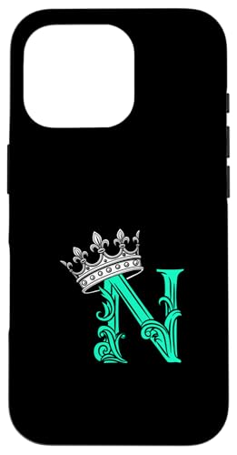 Lettre N Initiale + Couronne Bleu Sarcelle Clair Coque pour iPhone 16 Pro
