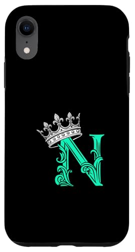 Lettre N Initiale + Couronne Bleu Sarcelle Clair Coque pour iPhone XR