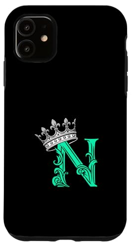 Lettre N Initiale + Couronne Bleu Sarcelle Clair Coque pour iPhone 11