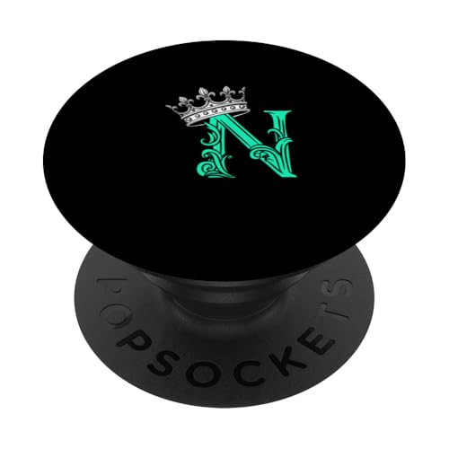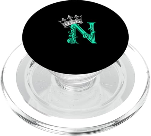 Lettre N Initiale + Couronne Bleu Sarcelle Clair PopSockets PopGrip pour MagSafe