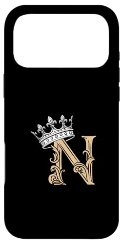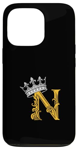 University Varsity-Lettre N Initiale + Couronne Doré Coque pour iPhone 13 Pro