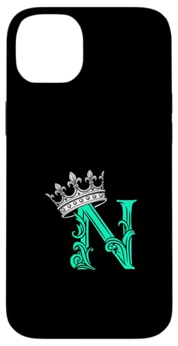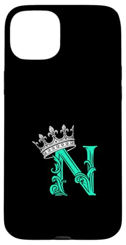 Lettre N Initiale + Couronne Bleu Sarcelle Clair Coque pour iPhone 15 Plus