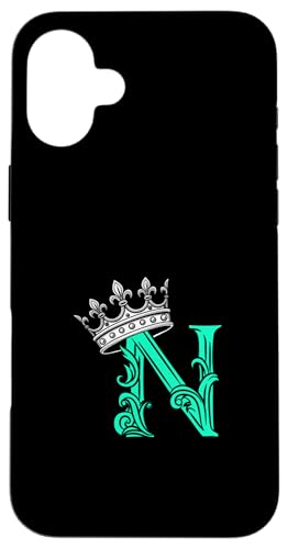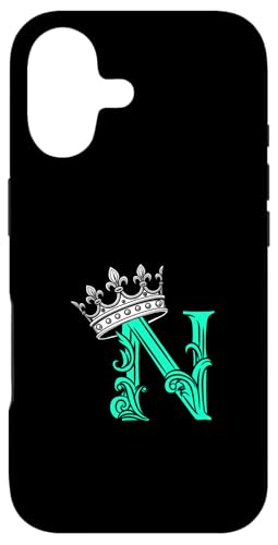 Lettre N Initiale + Couronne Bleu Sarcelle Clair Coque pour iPhone 16 Plus