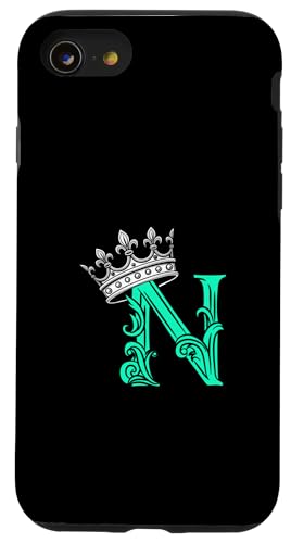 Lettre N Initiale + Couronne Bleu Sarcelle Clair Coque pour iPhone SE (2020) / 7/8