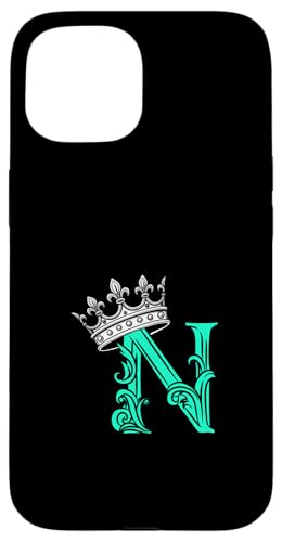 Lettre N Initiale + Couronne Bleu Sarcelle Clair Coque pour iPhone 15