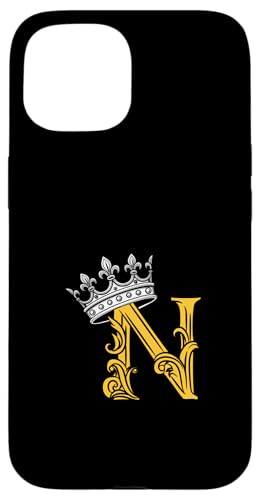 University Varsity-Lettre N Initiale + Couronne Doré Coque pour iPhone 15