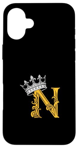 University Varsity-Lettre N Initiale + Couronne Doré Coque pour iPhone 16 Plus