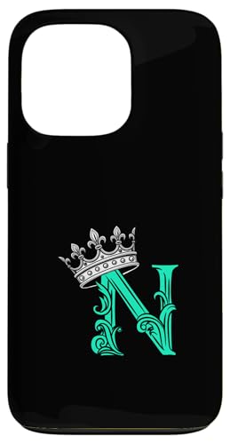 Lettre N Initiale + Couronne Bleu Sarcelle Clair Coque pour iPhone 13 Pro