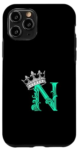 Lettre N Initiale + Couronne Bleu Sarcelle Clair Coque pour iPhone 11 Pro