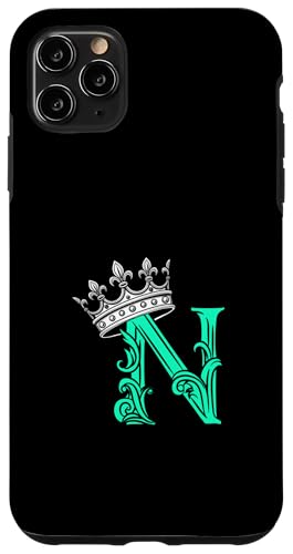 Lettre N Couleur Turquoise + Couronne Graphique Turquoise Coque pour iPhone 11 Pro Max