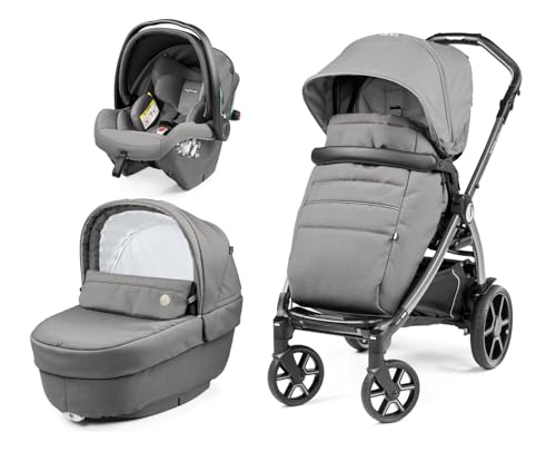 Peg Perego Book Modular - Pousette 3 en 1, 0-4 Ans, Poussette Réversible, Nacelle avec Comfort System, Siège Auto i-Size, Roues Soft Ride, Matelas Fresco Jersey, Mercury