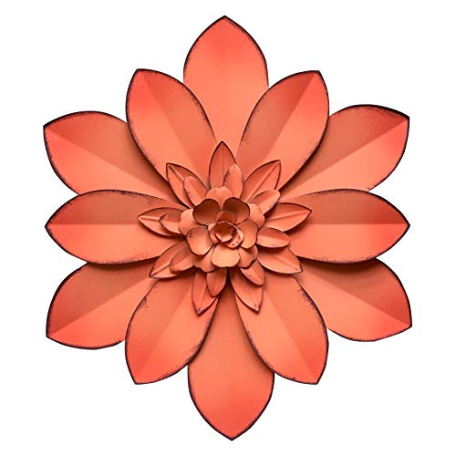 Picfarce Décoration murale de fleur en métal rose – Sculpture florale moderne rustique à suspendre – Œuvres d'art pour intérieur, chambre à coucher, salon, bureau, extérieur, jardin, terrasse – 28 cm