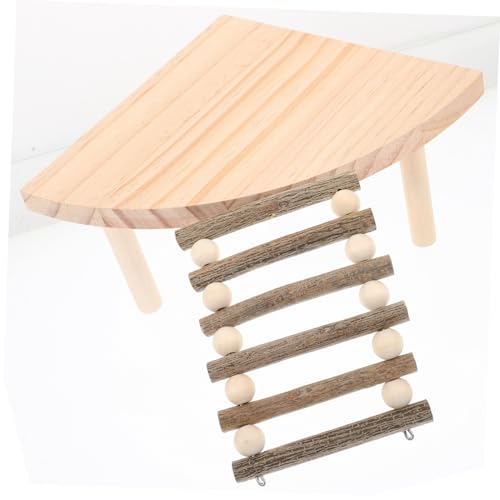 Lurrose Plate-Forme Bois Naturel pour Hamster Nain avec Échelle Accessoire Ludique pour Rat et Chinchilla Escalade pour Cage Animaux Petits