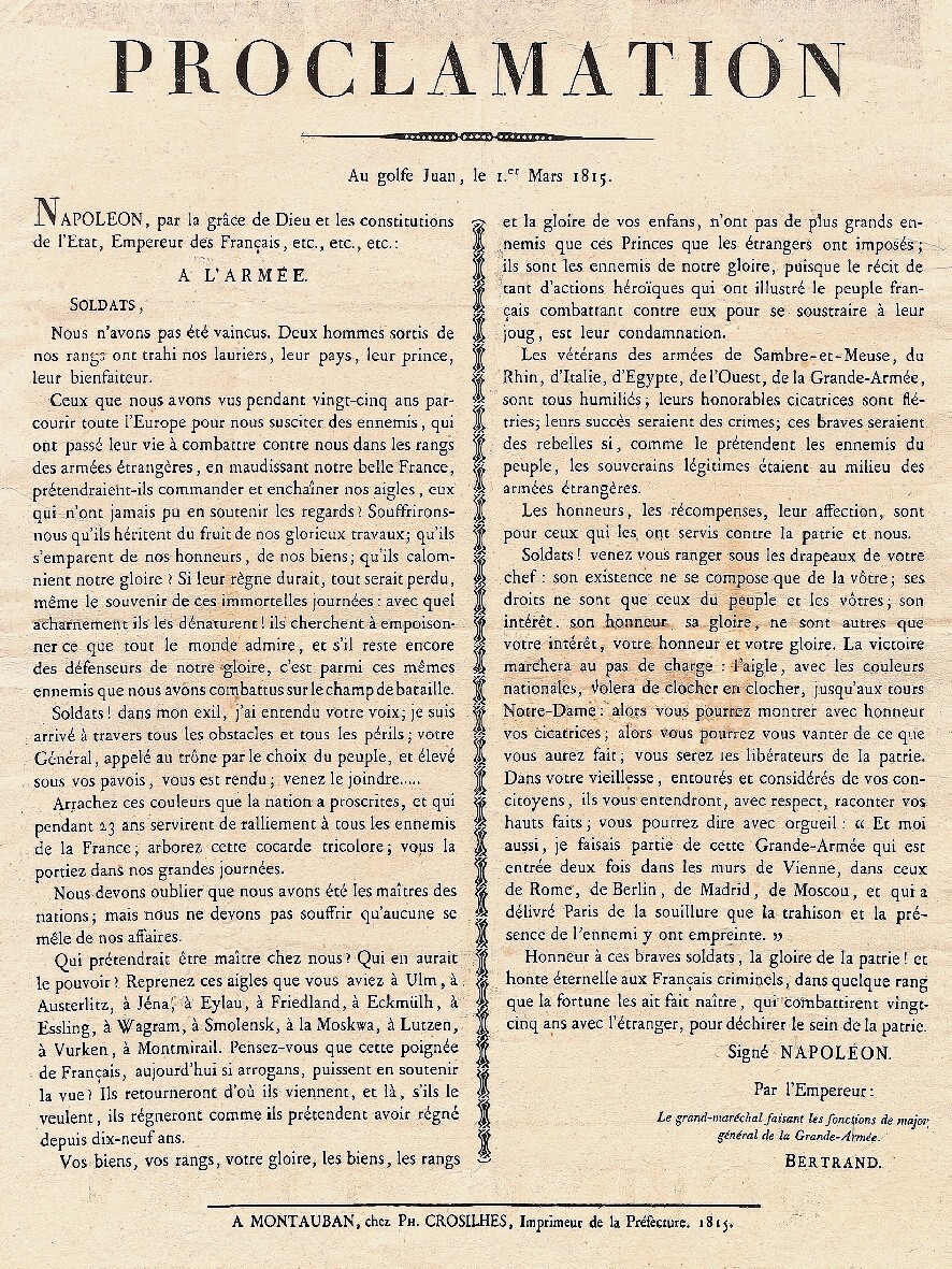 PROCLAMATION NAPOLéON 1815 GOLFE JUAN - POSTER HQ 45x60cm d'une AFFICHE ANCIENNE
