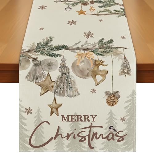 Chemin de Table de Noël, Nappe de Noel Rectangulaire, Nappe de Table Noel Winter Deco de Table Noel,Décoration de fête de Noël, 33x183CM (E)