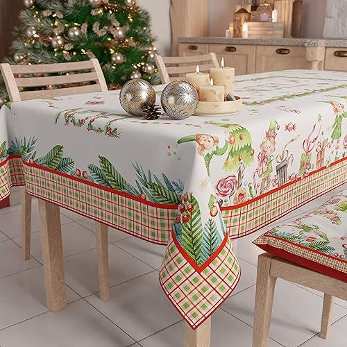 PETTI Artigiani Italiani - Nappe de Noël Anti-Taches Rectangulaire Couvre-Table pour Cuisine, Motif Elfe X12 Places (140 x 240 cm) 100% fabriquée en Italie