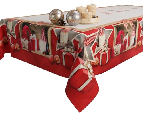 PETTI Artigiani Italiani - Nappe de Noël Anti-Taches Rectangulaire Couvre-Table pour Cuisine, Motif GNOME X6 Places (140 x 180 cm) 100% fabriqué en Italie