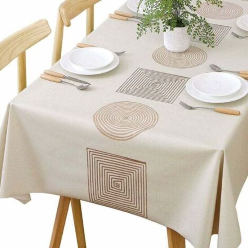 Ersandy – Nappe rectangulaire imperméable en PVC 140 x 220 cm – Antitache et anti-huile – Verso antidérapant – Design nordique beige
