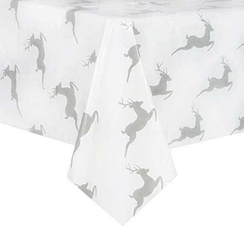 Mr Crimbo Nappe de Noël en PVC - Protection de Table rectangulaire en Vinyle - Accessoire de Maison - Décoration de Chambre de Noël - Gris et Blanc - 140 x 240 cm
