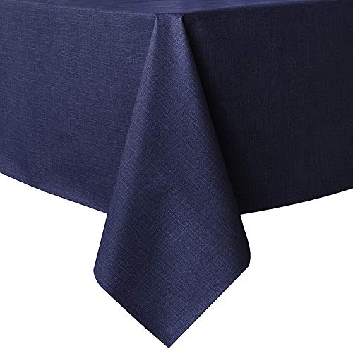 sancua Nappe rectangulaire en PVC 100% imperméable, résistante à l'huile et aux déversements, Facile à Nettoyer, pour Table à Manger, buffets et Camping, Bleu Marine, 152,4 x 213,4 cm