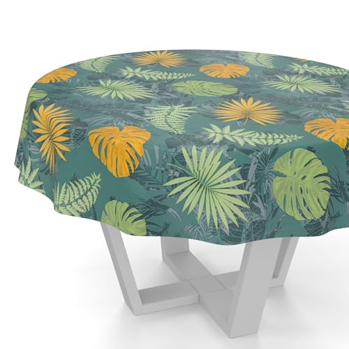 Nappe Lavable - Effet Lotus - Facile d'entretien - en Coton et Polyester - Anti-Taches - pour l'extérieur - Motif Jungle - Ronde - 140 cm