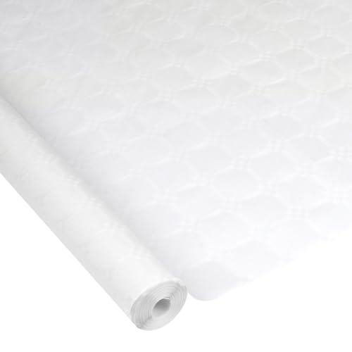 Pronappe - Réf. R480001I - 1 Nappe jetable papier damassé en rouleau 100 M de long X 1,18 M de large - Papier damassé au motif universel chic et classique - Couleur blanche