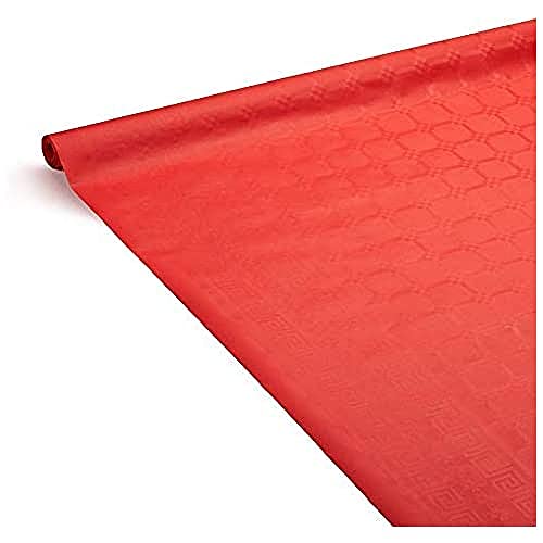 Pro Nappe - Réf R485021I - Nappe jetable en papier damassé en rouleau de 50 M de long X 1,18 M de large - Papier damassé au motif universel chic et classique - 166 couverts - Couleur rouge