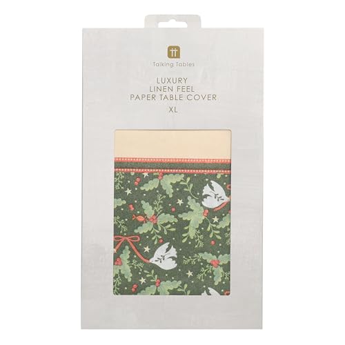 Talking Tables Folklore Nappe en Papier Vert Noël 230 cm x 137 cm pour fête d'anniversaire, Mariage, Traiteur, Restaurant, Anniversaire Nappe jetable en Lin