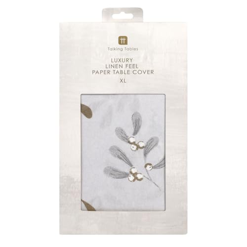 Talking Tables Nappe en Papier Blanc de Noël au gui 230 cm x 137 cm pour fête d'anniversaire, Mariage, Restauration, Restaurant, Anniversaire Nappe jetable en Lin