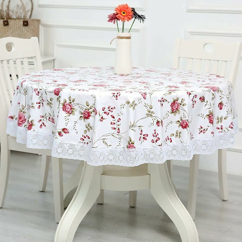Nappe Toile cirée PVC Ronde, avec Motif Floral et Dentelle, Nappe Ronde Anti Tache Impermeable Nappe de Table Toile Cirée de S