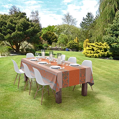 Autrefois Nappe Jacquard Enduite, Nappe Ronde Anti Tache, Nappe Tissu Facile à Nettoyer, Convient pour Repas, Salle à Manger, Mariage et Evénements, Azulejos Orange 180 cm