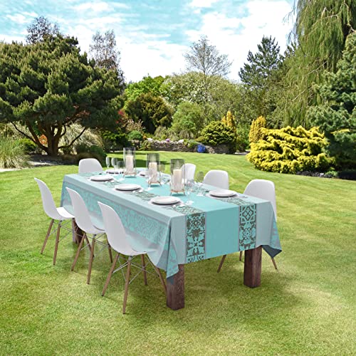 Valia Home® Nappe enduite de téflon pour l'intérieur et l'extérieur dans 6 Designs | Nappe Lavable, Hydrofuge et résistante aux salissures grâce à Un Effet Lotus fiable, Ronde 140cm Méditerranée